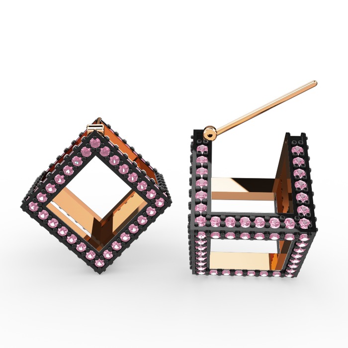 Pembe kuvars 8 ayar rose altın küpe