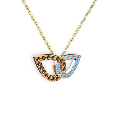 Akuamarin ve dumanlı kuvars 14 ayar rose altın kolye (40 cm altın rolo zincir)