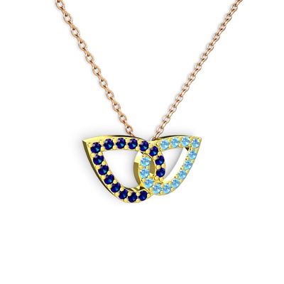 Akuamarin ve lab safir 14 ayar altın kolye (40 cm gümüş rolo zincir)