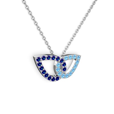 Akuamarin ve lab safir 8 ayar beyaz altın kolye (40 cm gümüş rolo zincir)