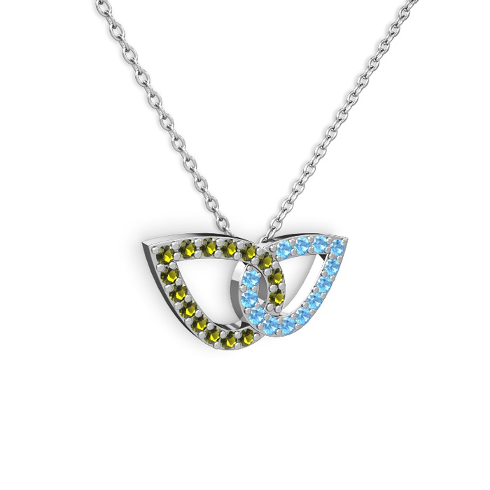 Akuamarin ve peridot 18 ayar beyaz altın kolye (40 cm gümüş rolo zincir)