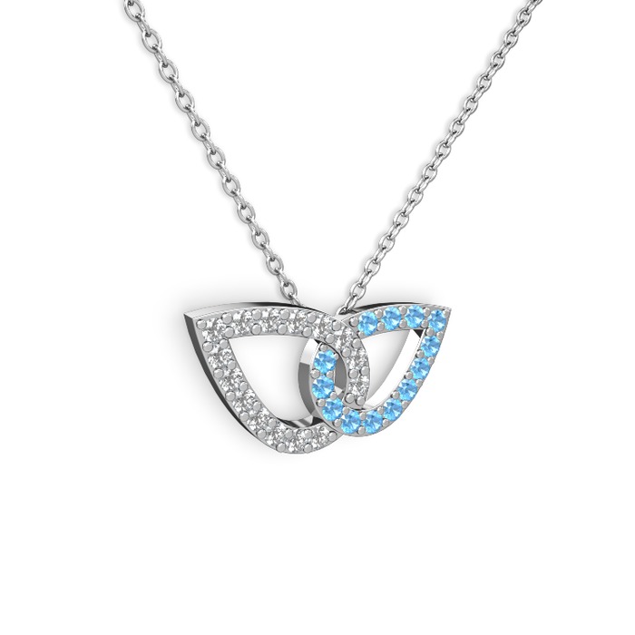 Akuamarin ve pırlanta 14 ayar beyaz altın kolye (0.154 karat, 40 cm gümüş rolo zincir)