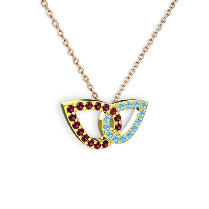 Akuamarin ve rodolit garnet 14 ayar altın kolye (40 cm rose altın rolo zincir)