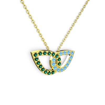 Akuamarin ve yeşil kuvars 14 ayar altın kolye (40 cm altın rolo zincir)