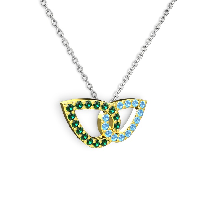 Akuamarin ve yeşil kuvars 18 ayar altın kolye (40 cm beyaz altın rolo zincir)