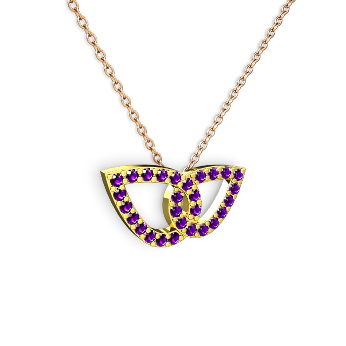 Ametist 14 ayar altın kolye (40 cm gümüş rolo zincir)