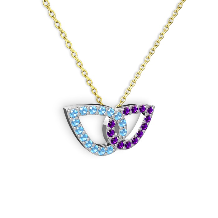 Ametist ve akuamarin 18 ayar beyaz altın kolye (40 cm altın rolo zincir)