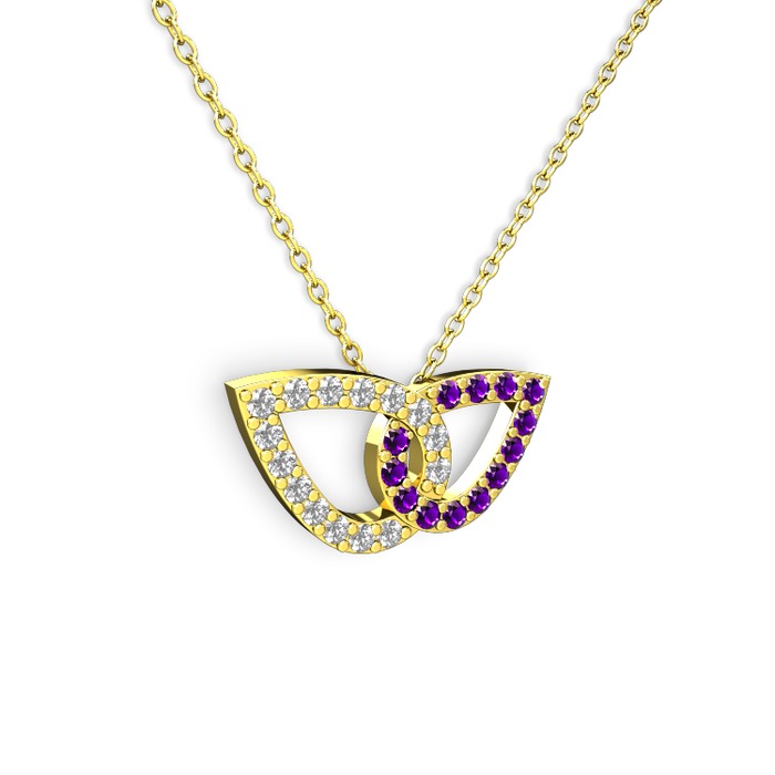 Ametist ve beyaz zirkon 8 ayar altın kolye (40 cm altın rolo zincir)