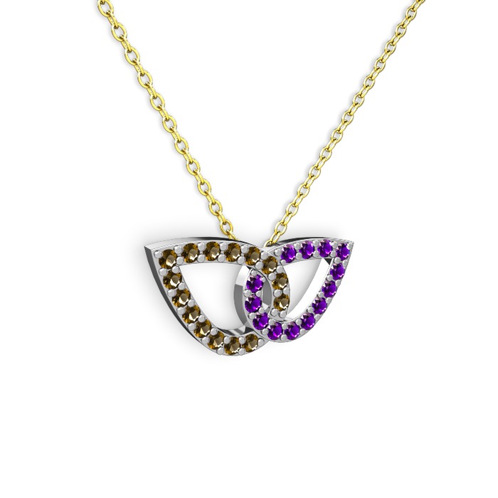 Ametist ve dumanlı kuvars 8 ayar beyaz altın kolye (40 cm altın rolo zincir)