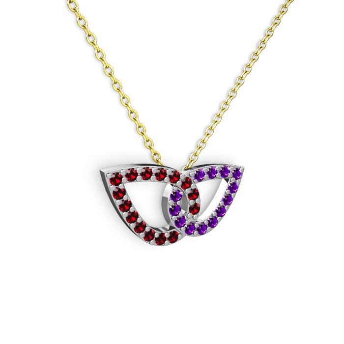 Ametist ve garnet 14 ayar beyaz altın kolye (40 cm altın rolo zincir)