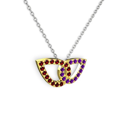 Ametist ve garnet 925 ayar altın kaplama gümüş kolye (40 cm beyaz altın rolo zincir)