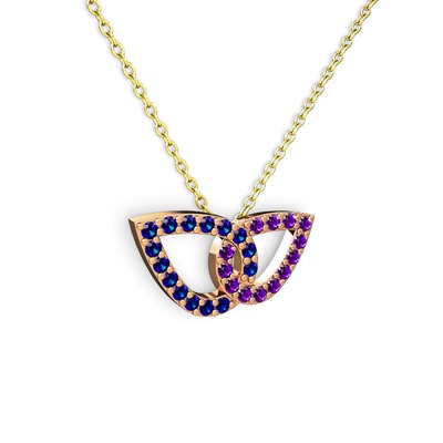 Ametist ve lab safir 8 ayar rose altın kolye (40 cm altın rolo zincir)