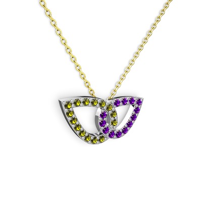 Ametist ve peridot 925 ayar gümüş kolye (40 cm altın rolo zincir)