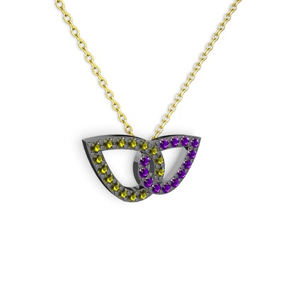 Ametist ve peridot 925 ayar siyah rodyum kaplama gümüş kolye (40 cm gümüş rolo zincir)