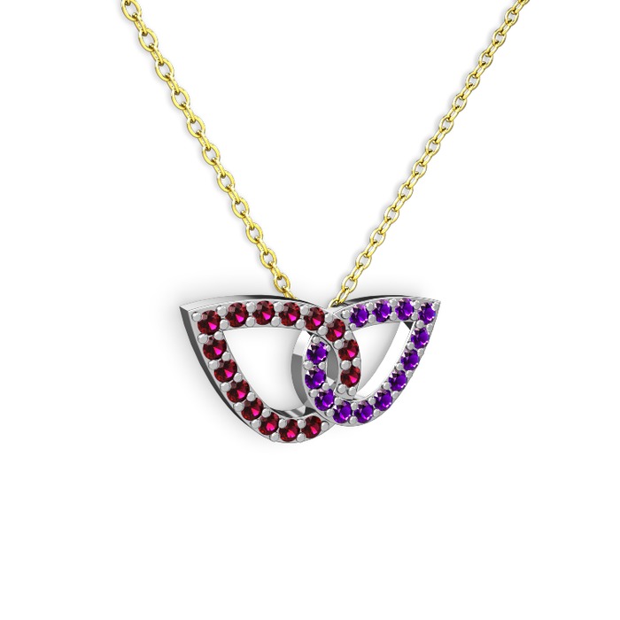 Ametist ve rodolit garnet 8 ayar beyaz altın kolye (40 cm altın rolo zincir)