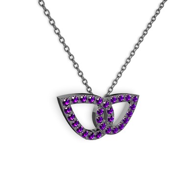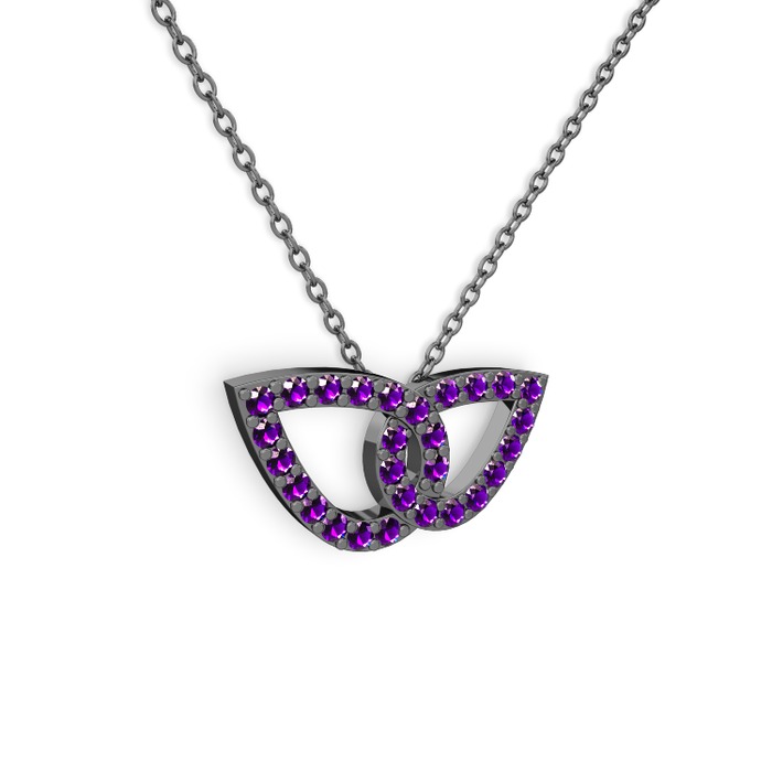Ametist 925 ayar siyah rodyum kaplama gümüş kolye (40 cm gümüş rolo zincir)