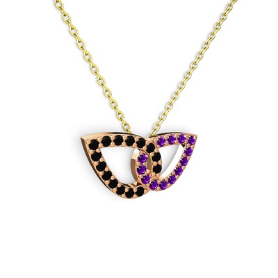 Ametist ve siyah zirkon 925 ayar rose altın kaplama gümüş kolye (40 cm altın rolo zincir)