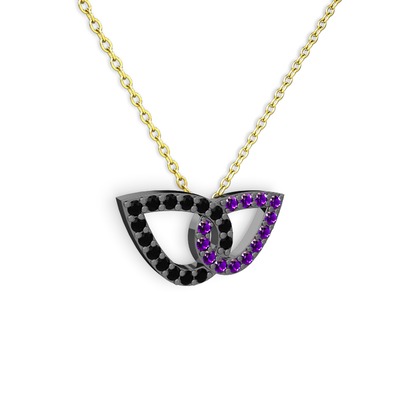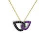Ametist ve siyah zirkon 925 ayar siyah rodyum kaplama gümüş kolye (40 cm altın rolo zincir)