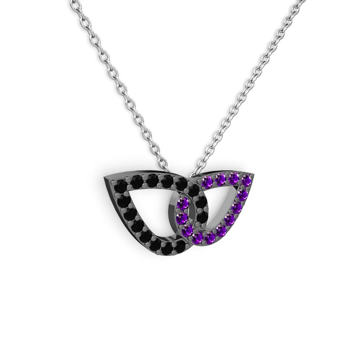 Ametist ve siyah zirkon 925 ayar siyah rodyum kaplama gümüş kolye (40 cm beyaz altın rolo zincir)