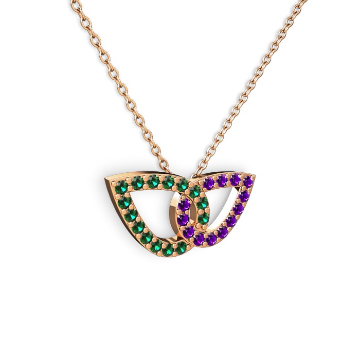 Ametist ve yeşil kuvars 14 ayar rose altın kolye (40 cm rose altın rolo zincir)