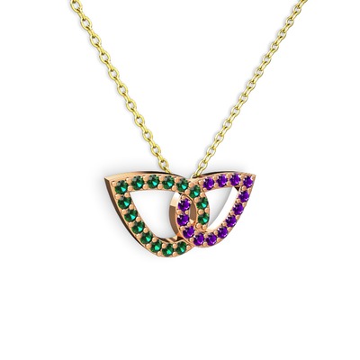 Ametist ve yeşil kuvars 18 ayar rose altın kolye (40 cm altın rolo zincir)