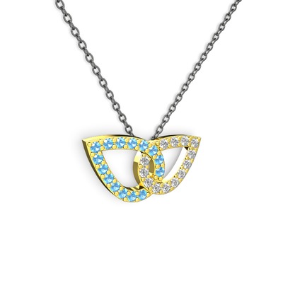 Beyaz zirkon ve akuamarin 8 ayar altın kolye (40 cm gümüş rolo zincir)