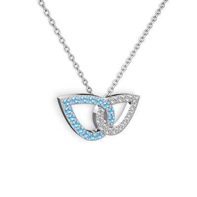 Beyaz zirkon ve akuamarin 8 ayar beyaz altın kolye (40 cm gümüş rolo zincir)