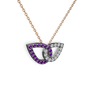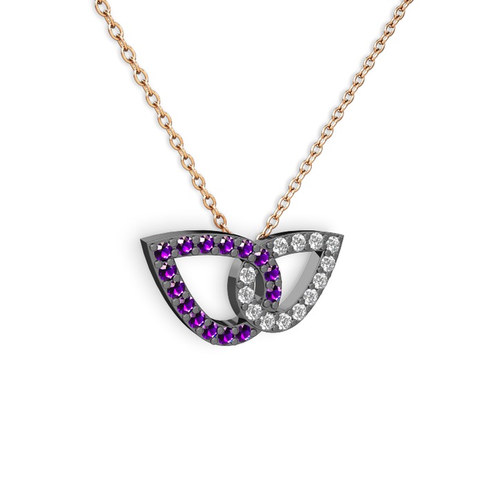 Beyaz zirkon ve ametist 925 ayar siyah rodyum kaplama gümüş kolye (40 cm rose altın rolo zincir)