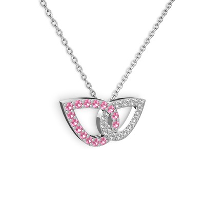 Beyaz zirkon ve pembe kuvars 8 ayar beyaz altın kolye (40 cm gümüş rolo zincir)
