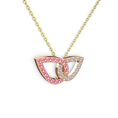 Beyaz zirkon ve pembe kuvars 925 ayar rose altın kaplama gümüş kolye (40 cm altın rolo zincir)