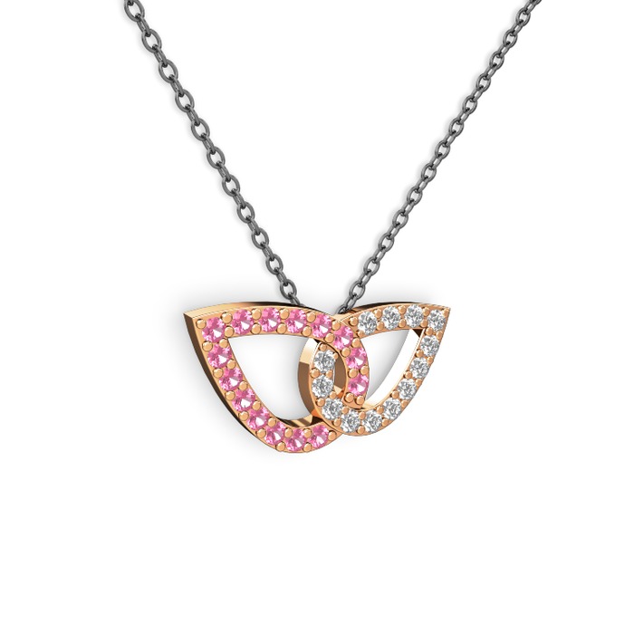 Beyaz zirkon ve pembe kuvars 925 ayar rose altın kaplama gümüş kolye (40 cm gümüş rolo zincir)