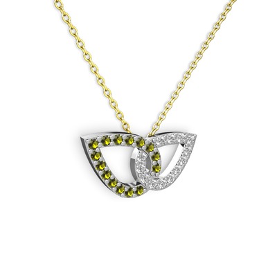 Beyaz zirkon ve peridot 925 ayar gümüş kolye (40 cm altın rolo zincir)