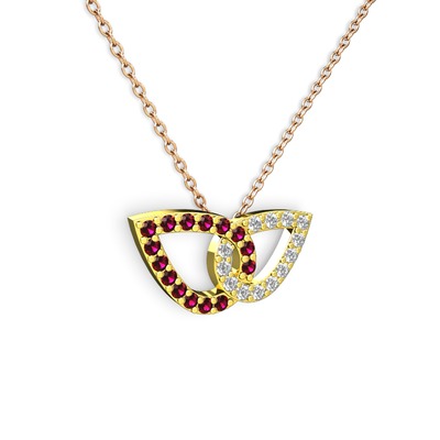 Beyaz zirkon ve rodolit garnet 18 ayar altın kolye (40 cm gümüş rolo zincir)