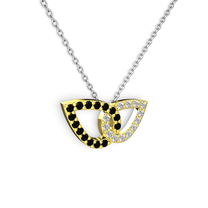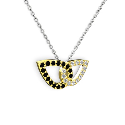 Beyaz zirkon ve siyah zirkon 18 ayar altın kolye (40 cm beyaz altın rolo zincir)