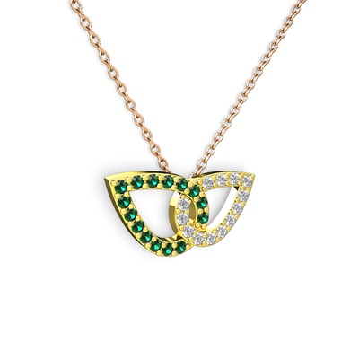 Beyaz zirkon ve yeşil kuvars 8 ayar altın kolye (40 cm rose altın rolo zincir)