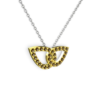 Dumanlı kuvars 14 ayar altın kolye (40 cm beyaz altın rolo zincir)