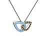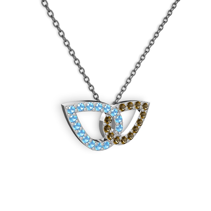 Dumanlı kuvars ve akuamarin 18 ayar beyaz altın kolye (40 cm gümüş rolo zincir)