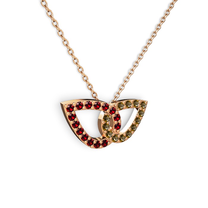 Dumanlı kuvars ve garnet 925 ayar rose altın kaplama gümüş kolye (40 cm rose altın rolo zincir)