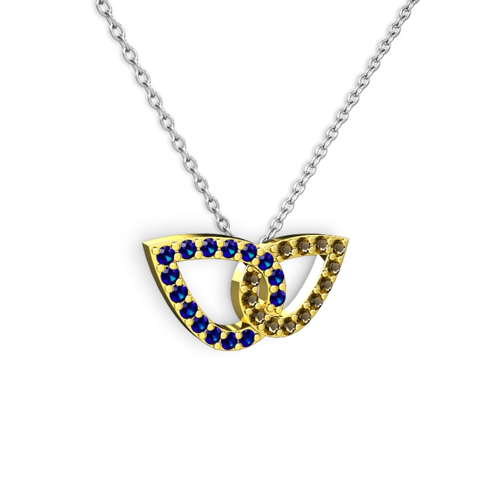 Dumanlı kuvars ve lab safir 18 ayar altın kolye (40 cm beyaz altın rolo zincir)