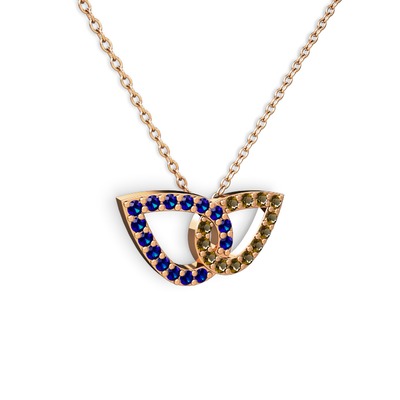 Dumanlı kuvars ve lab safir 8 ayar rose altın kolye (40 cm rose altın rolo zincir)