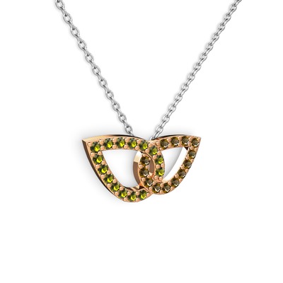 Dumanlı kuvars ve peridot 18 ayar rose altın kolye (40 cm beyaz altın rolo zincir)