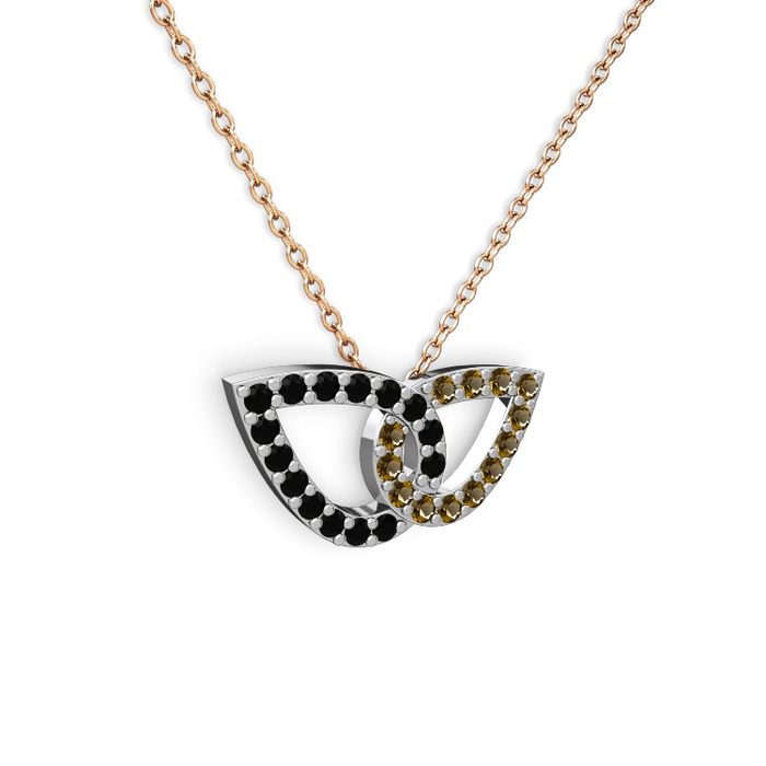 Dumanlı kuvars ve siyah zirkon 18 ayar beyaz altın kolye (40 cm rose altın rolo zincir)