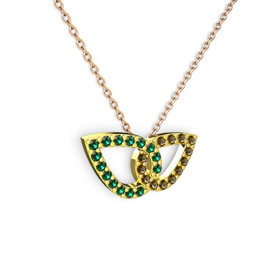 Dumanlı kuvars ve yeşil kuvars 18 ayar altın kolye (40 cm rose altın rolo zincir)