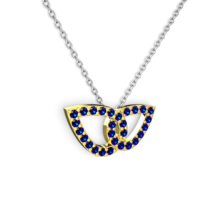Lab safir 18 ayar altın kolye (40 cm beyaz altın rolo zincir)