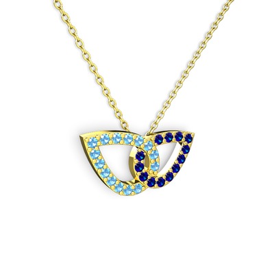 Lab safir ve akuamarin 8 ayar altın kolye (40 cm altın rolo zincir)