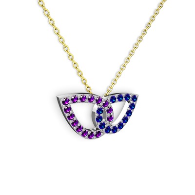 Lab safir ve ametist 18 ayar beyaz altın kolye (40 cm altın rolo zincir)