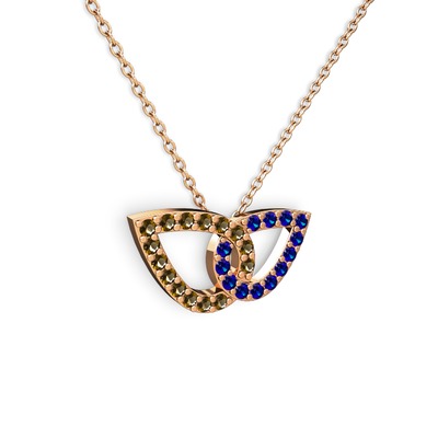 Lab safir ve dumanlı kuvars 18 ayar rose altın kolye (40 cm rose altın rolo zincir)