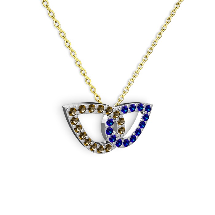 Lab safir ve dumanlı kuvars 8 ayar beyaz altın kolye (40 cm altın rolo zincir)