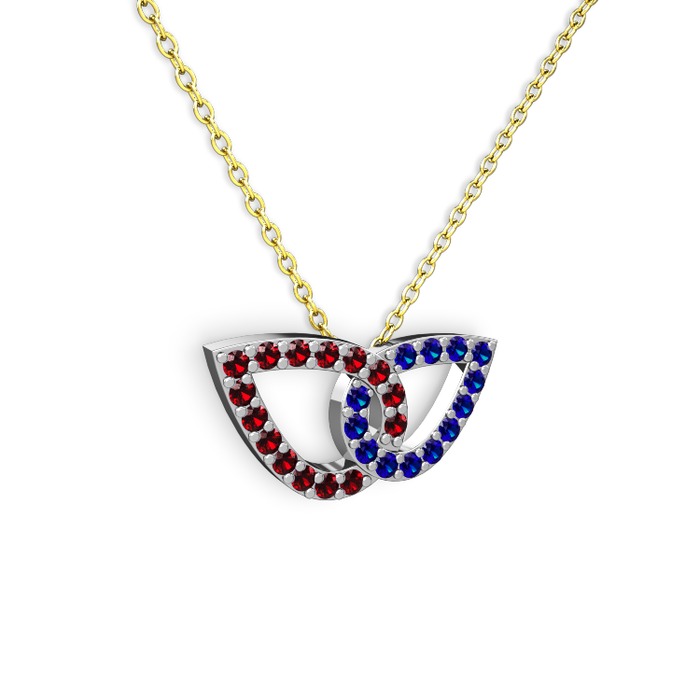 Lab safir ve garnet 8 ayar beyaz altın kolye (40 cm altın rolo zincir)