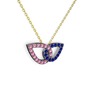 Lab safir ve pembe kuvars 925 ayar siyah rodyum kaplama gümüş kolye (40 cm altın rolo zincir)